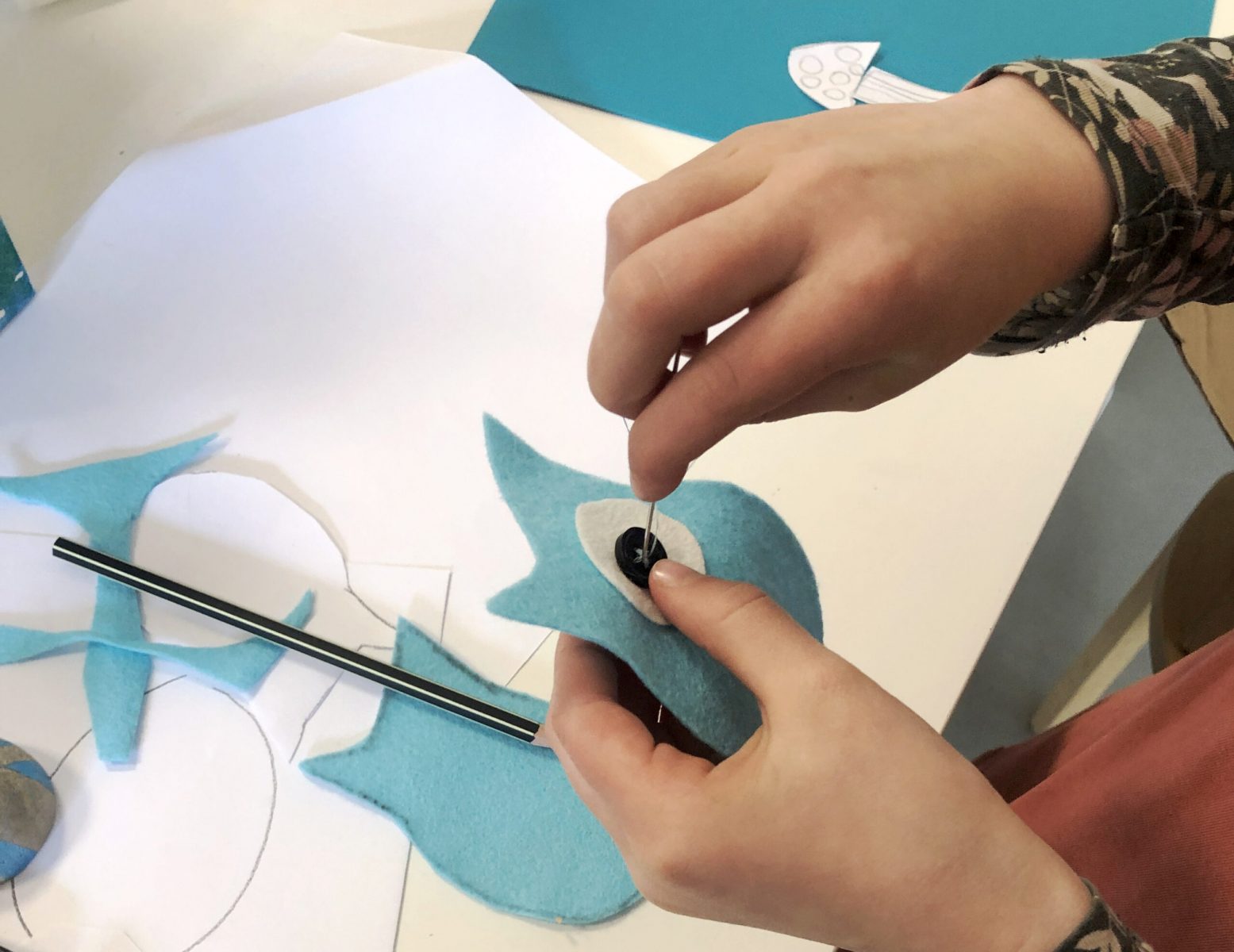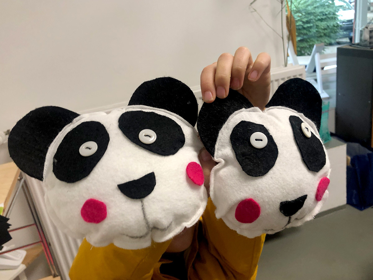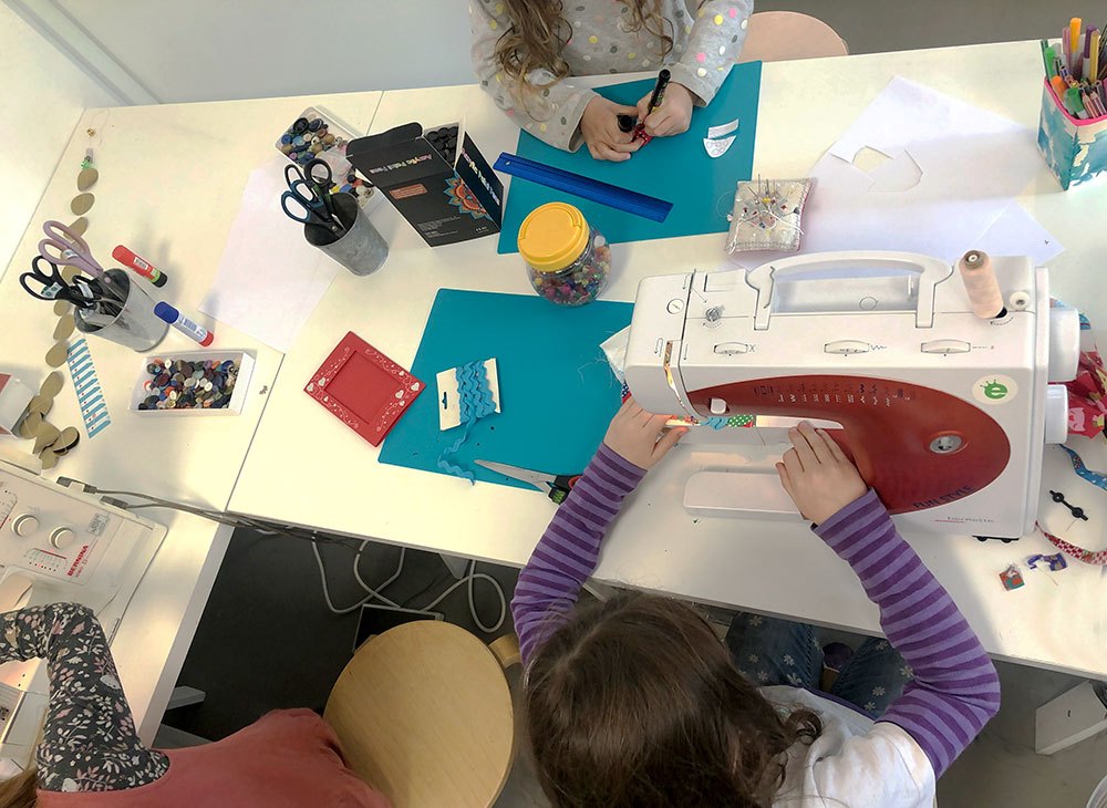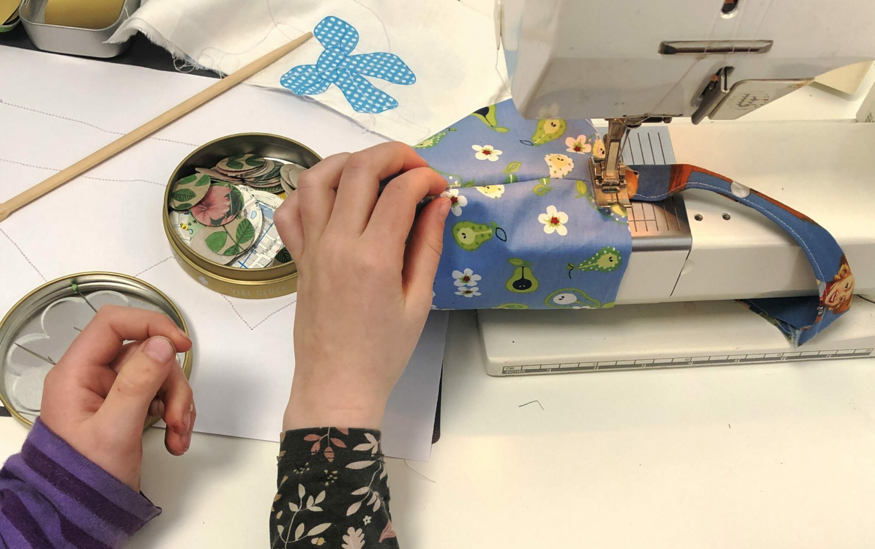 Dabei entstehen verschiedene genähte Dinge, die die Kinder dann mit nach Hause nehmen können.